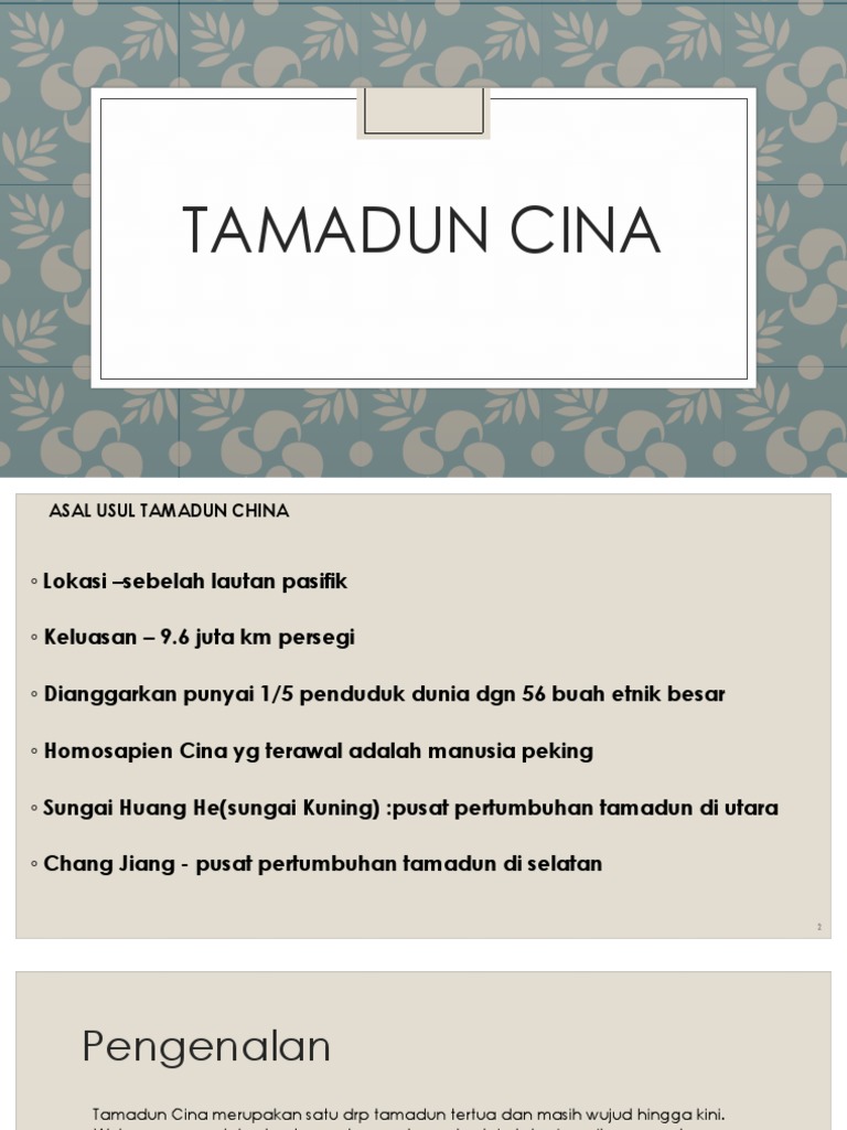 Muat turun halaman 1-16 di AnyFlip. Tamadun cina TAMADUN CINA LATAR BELAKANG Bermula di Lembah Huang He utara China 4000-2000SM dikenali sebagai Zaman Batu Terakhir Perkembanganya boleh dibahagikan kepada beberapa tahap. Memperkenalkan penggunaan mata wang perniagaan.
